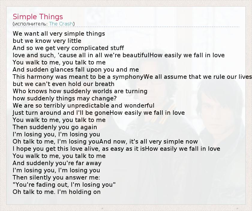 Oh talk to me, I'm losing youAnd now, it's all very simple now