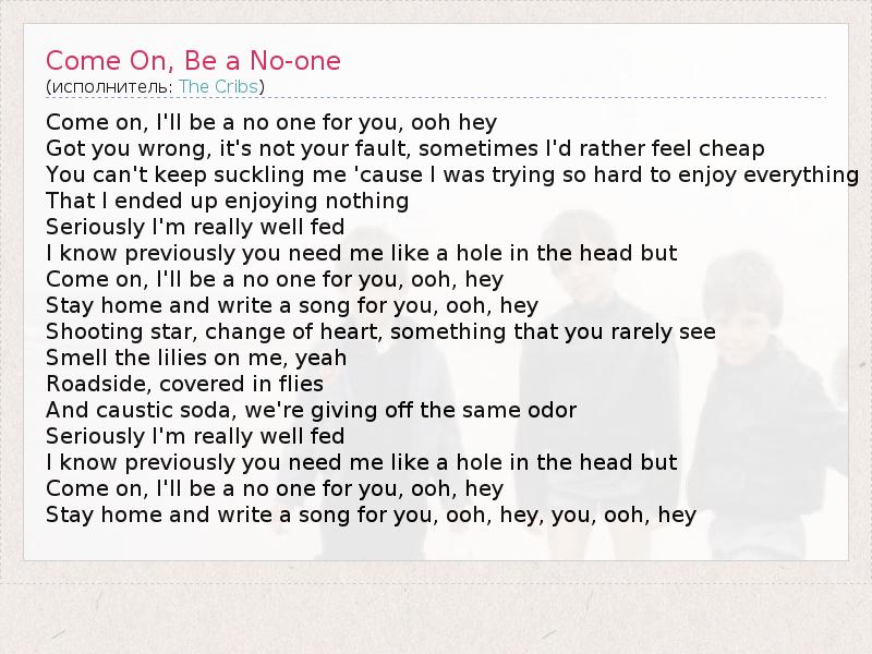 А как ты думаешь, о чем песня "Come On, Be a No-one" ?