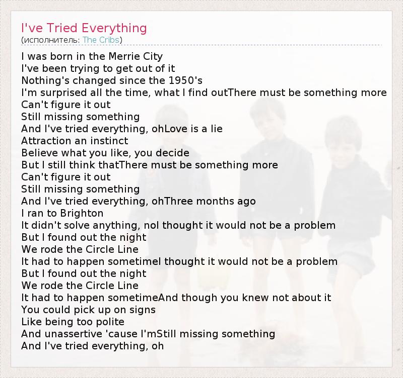 А как ты думаешь, о чем песня "I've Tried Everything" ?