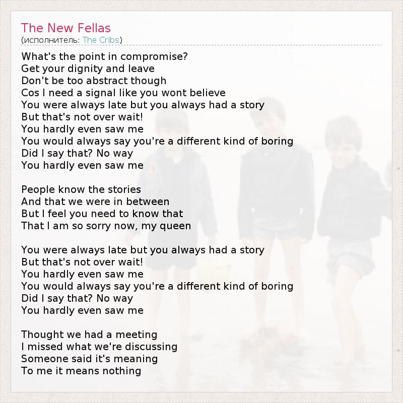 А как ты думаешь, о чем песня "The New Fellas" ?