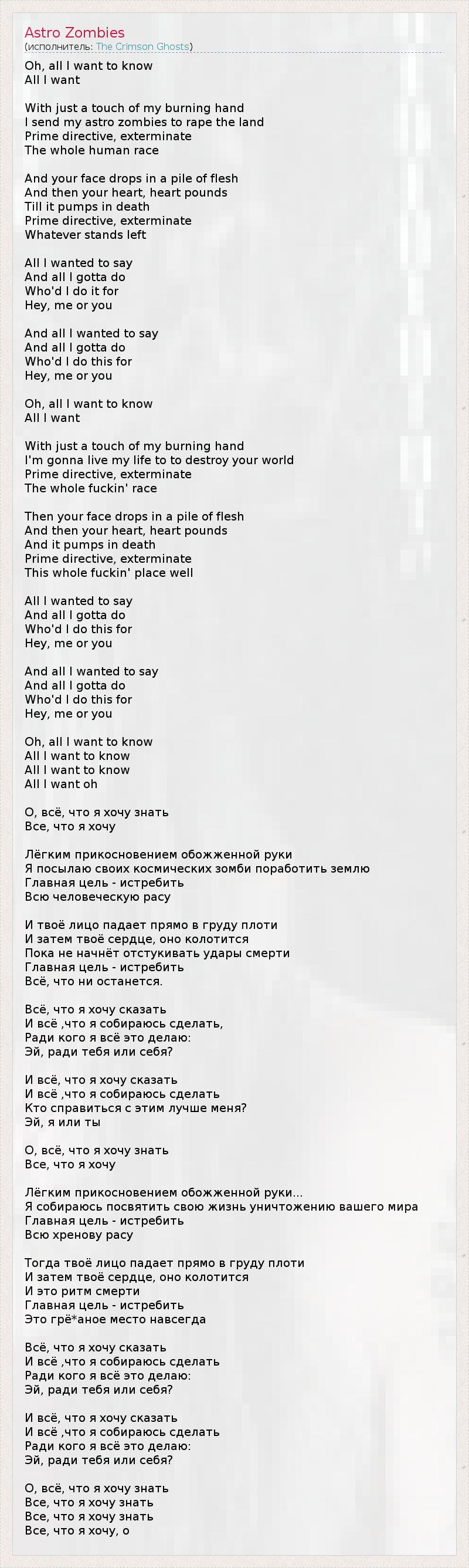 А как ты думаешь, о чем песня "Astro Zombies" ?