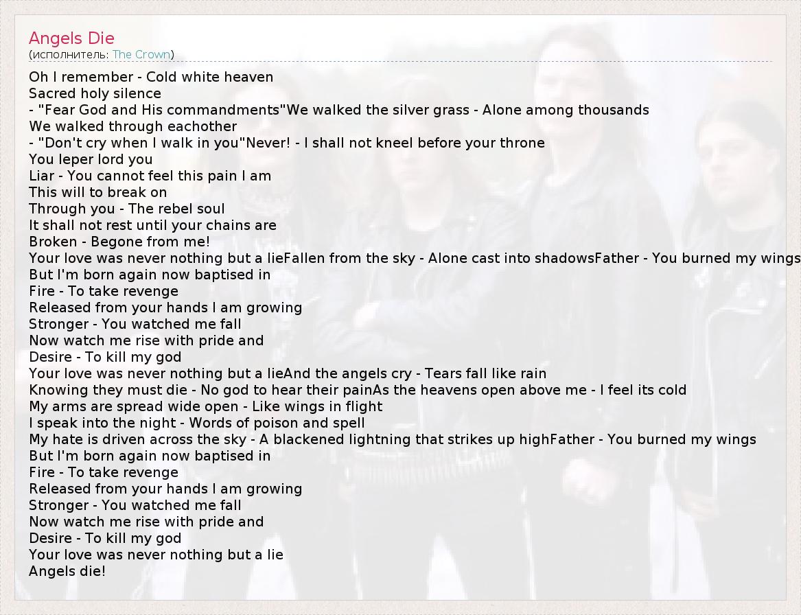 Your love was never nothing but a lieFallen from the sky - Alone cast into shadowsFather - You burned my wings