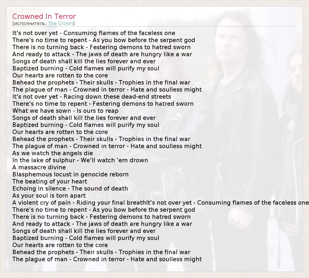 А как ты думаешь, о чем песня "Crowned In Terror" ?