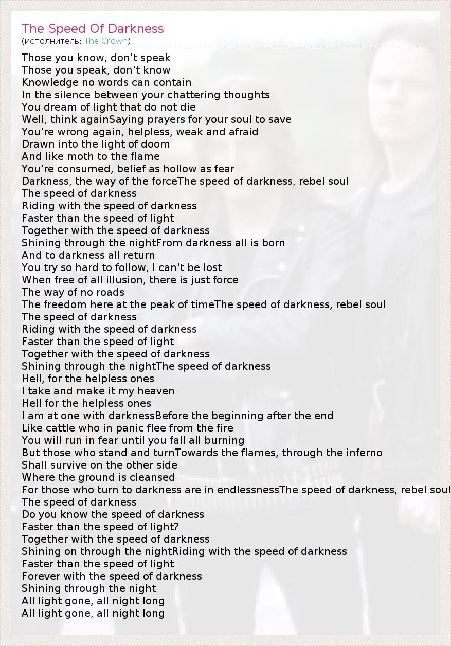 А как ты думаешь, о чем песня "The Speed Of Darkness" ?
