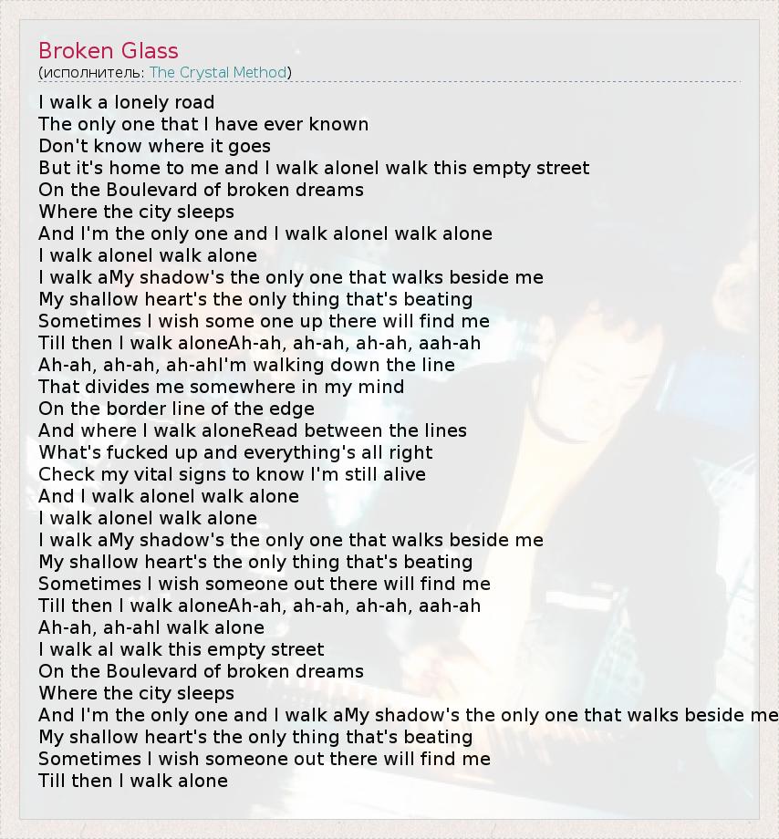 А как ты думаешь, о чем песня "Broken Glass" ?