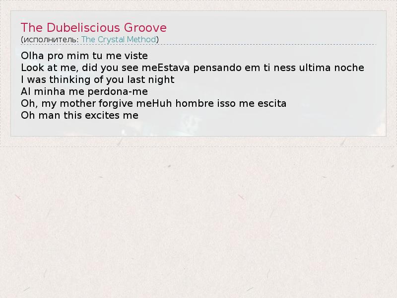 А как ты думаешь, о чем песня "The Dubeliscious Groove" ?