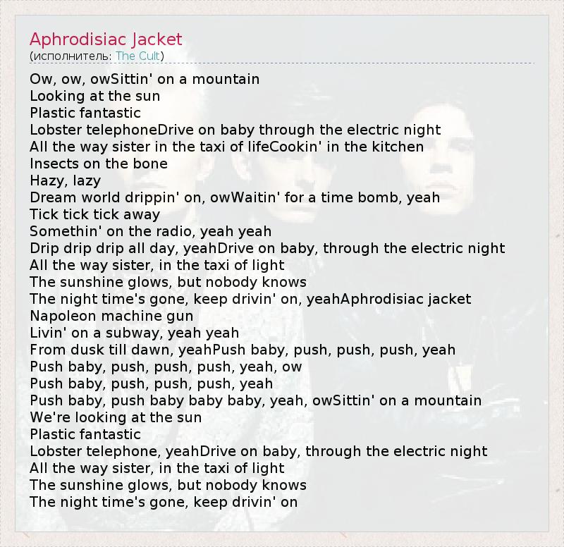 А как ты думаешь, о чем песня "Aphrodisiac Jacket" ?