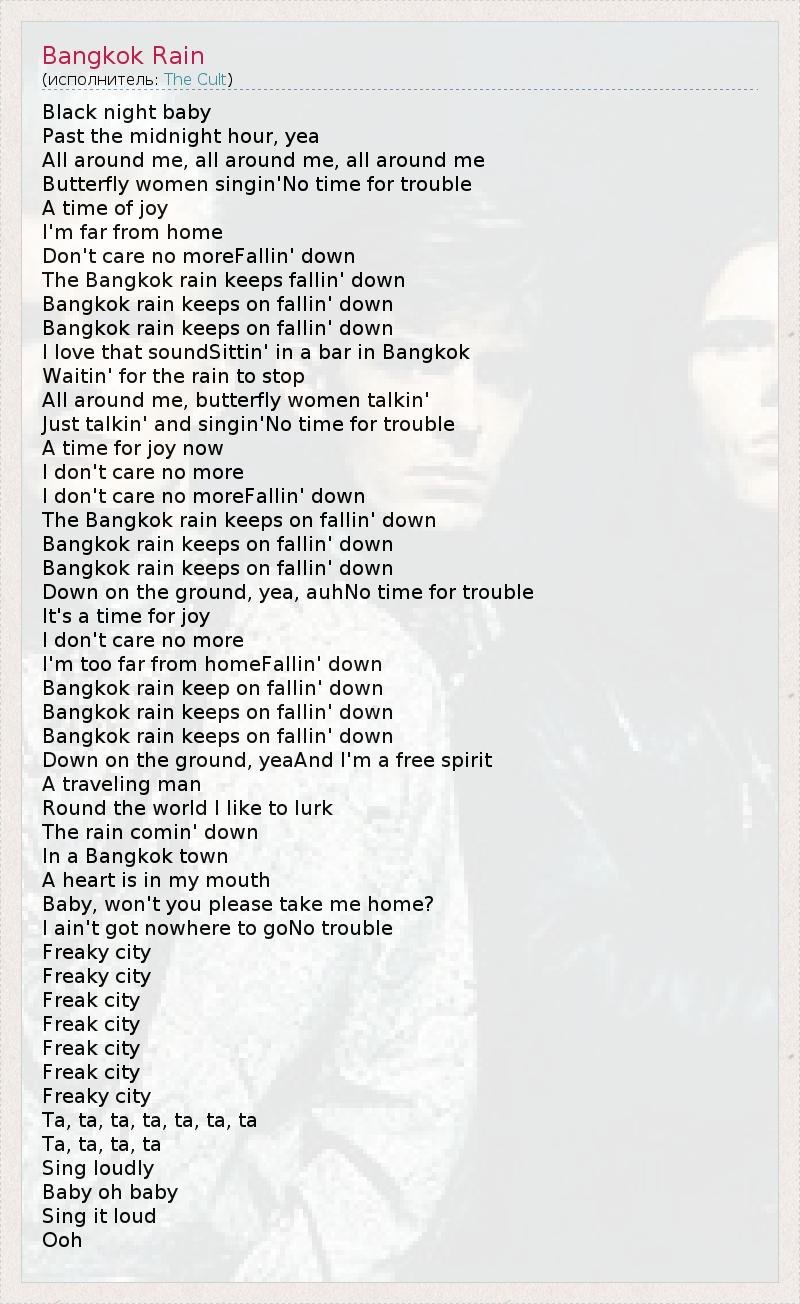 А как ты думаешь, о чем песня "Bangkok Rain" ?