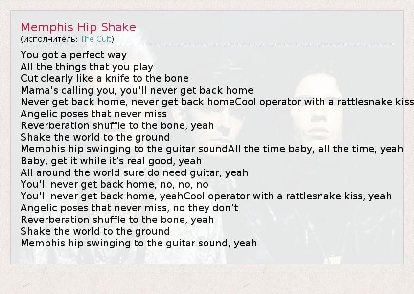 А как ты думаешь, о чем песня "Memphis Hip Shake" ?