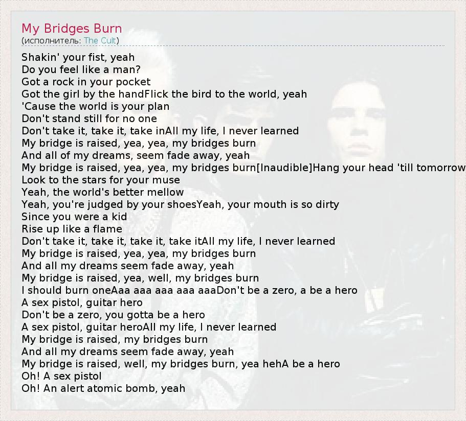 А как ты думаешь, о чем песня "My Bridges Burn" ?