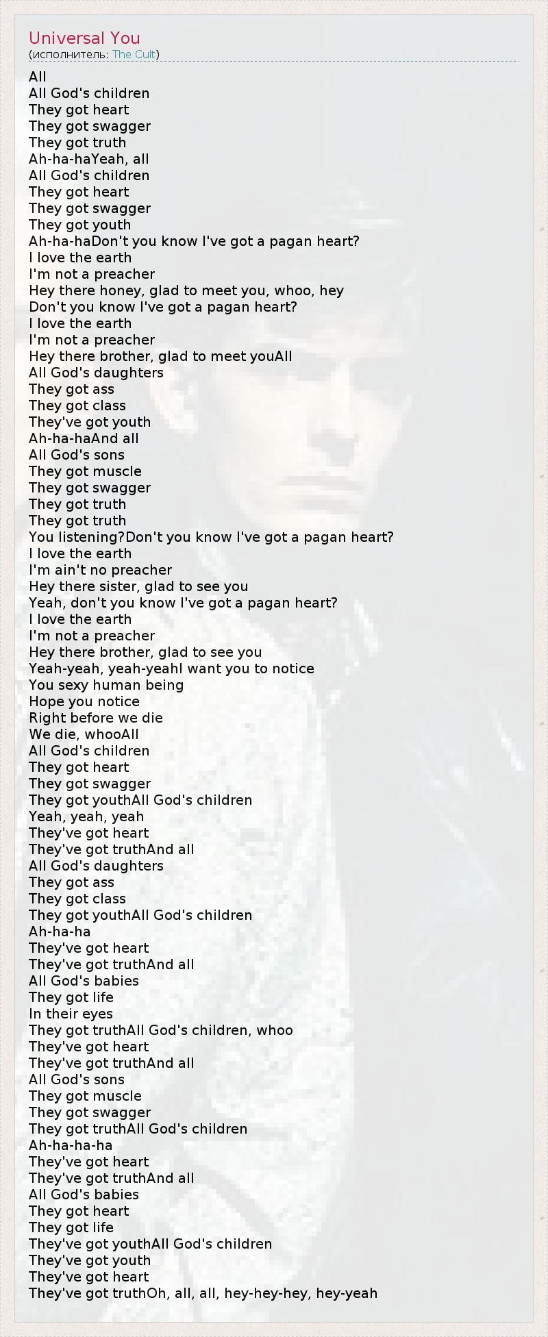 Это интересно:The Cult - хард-рок, глэм-рок группа из Великобритании (Брэдфорд).В творчестве появившейся в середине 80-х на британском небосклоне группы The Cult современники слышали отголоски гитарного стиля Led Zeppelin, мистицизма The Doors и трехаккордных атак AC/DC. За последующие годы, то приближаясь к мейнстриму, то удаляясь от него, команда прошла через испытание постпанком, психоделией, готическим роком и даже... продолжение