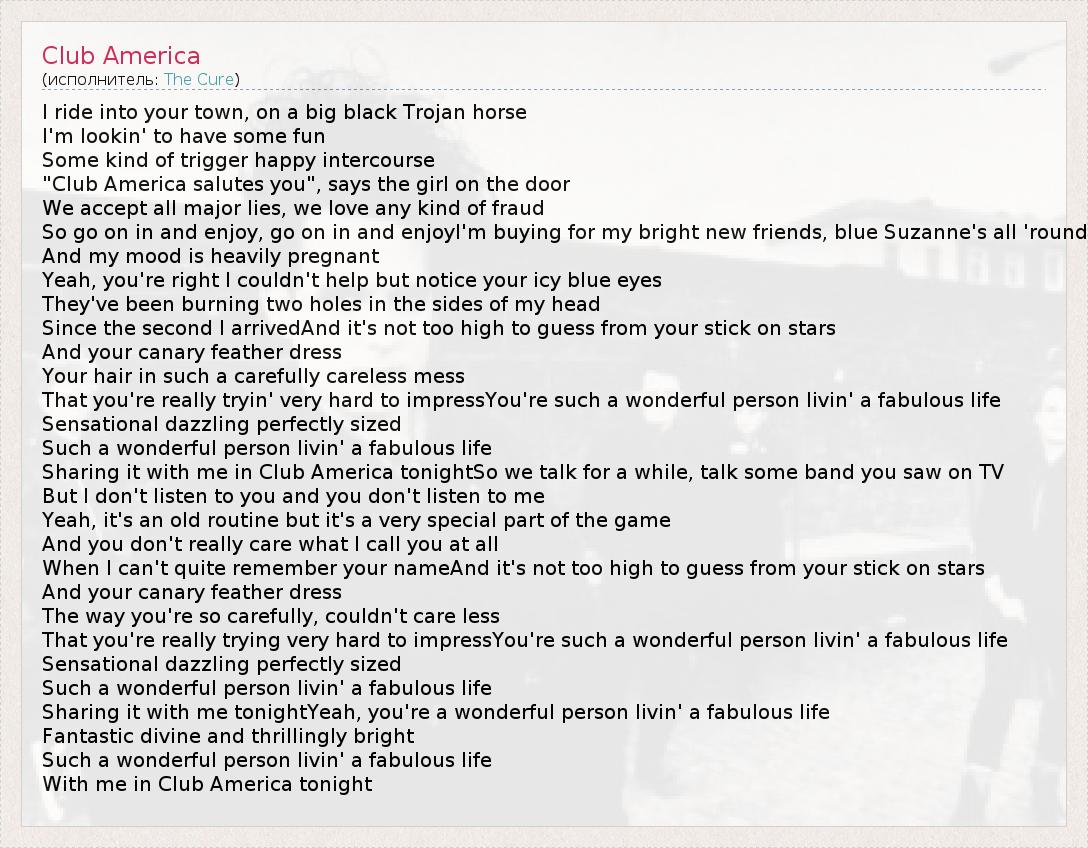 Sharing it with me in Club America tonightSo we talk for a while, talk some band you saw on TV