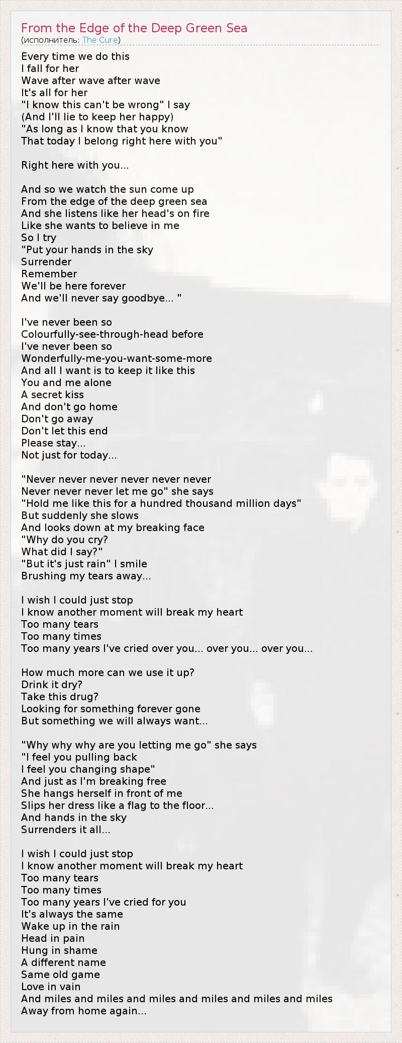 ГлавнаяИсполнителиThe CureFrom the Edge of the Deep Green Sea