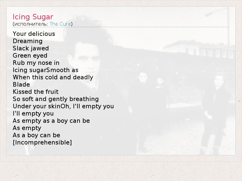 А как ты думаешь, о чем песня "Icing Sugar" ?
