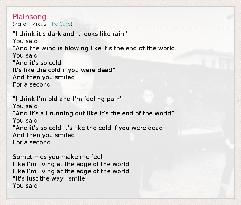 The Cure утвердили в начале 80-х за собой звание темной и мрачной группы благодаря таким альбомам, как Faith и Pornography. Они покончили с выпуском поп-синглов, таких как «Let's Go to Bed» и «Lovecats», а также с сопровождающими эти синглы видеоклипы Тима Поупа. Следующие альбомы The Top, The Head on the Door и Kiss Me, Kiss Me, Kiss Me в значительной степени продолжили эксперименты с поп-музыкой, хотя на всех трёх альбомах была показана тёмная сторона Роберта Смита, как в музыкальном плане, так и в лирическом. Disintegration представлял собой возвращение более тёмного стиля музыки группы в то же время не забывая об экспериментах.