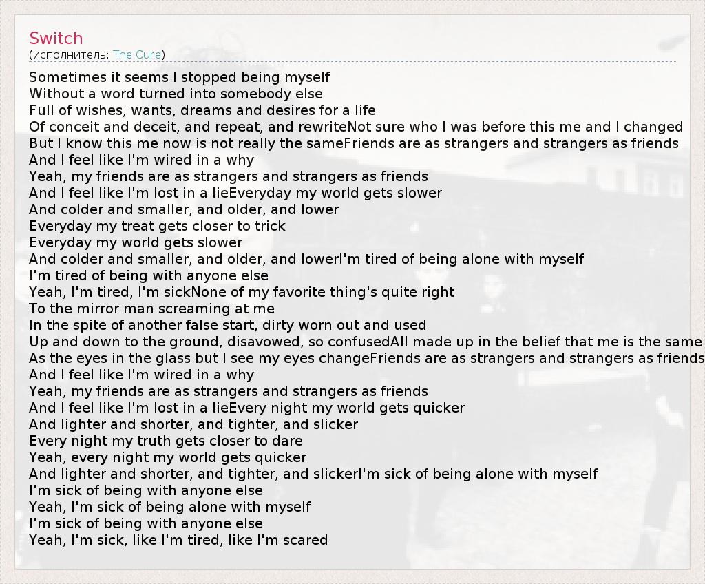 But I know this me now is not really the sameFriends are as strangers and strangers as friends
