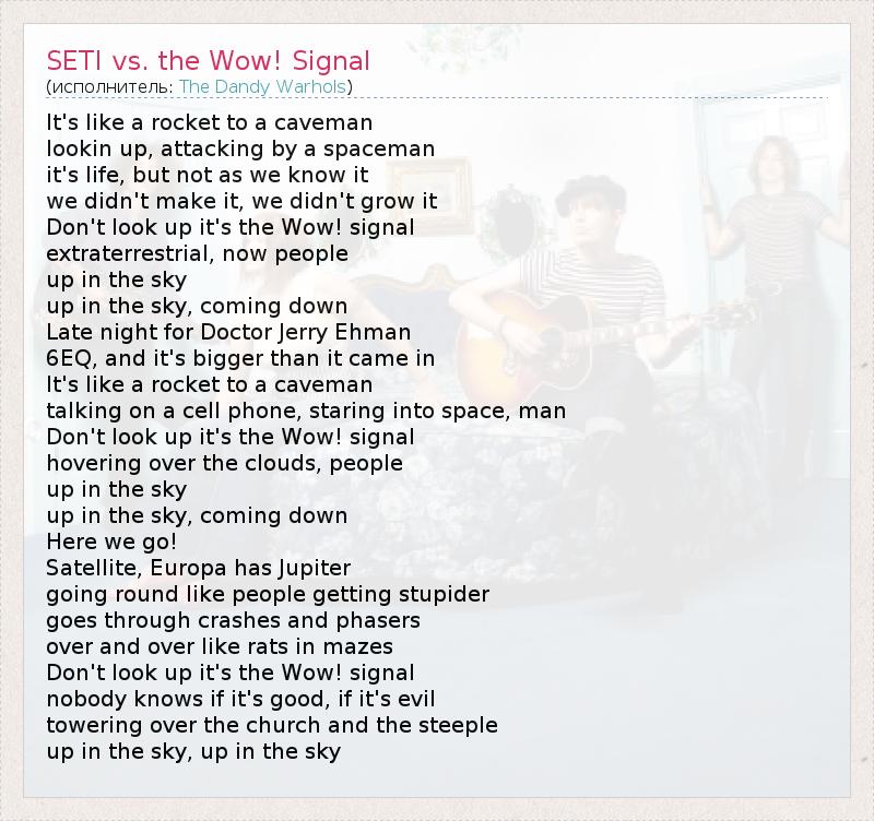А как ты думаешь, о чем песня "SETI vs. the Wow! Signal" ?