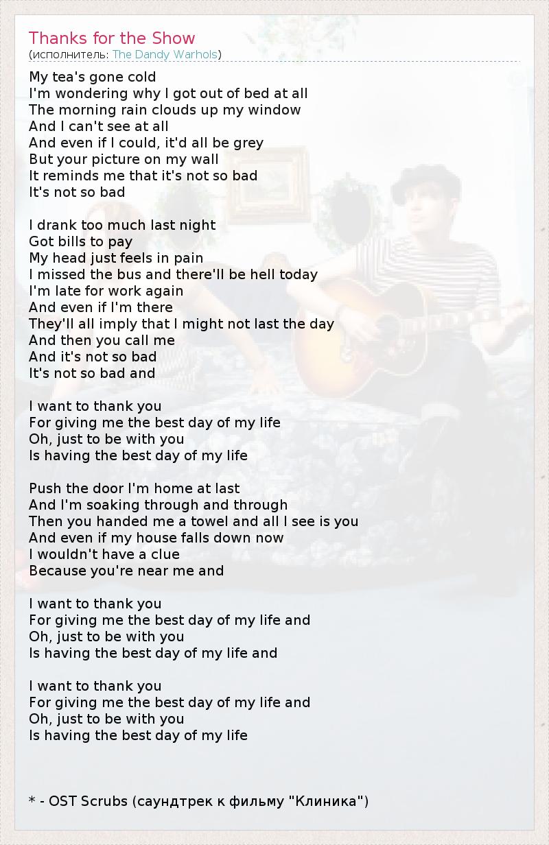 А как ты думаешь, о чем песня "Thanks for the Show" ?