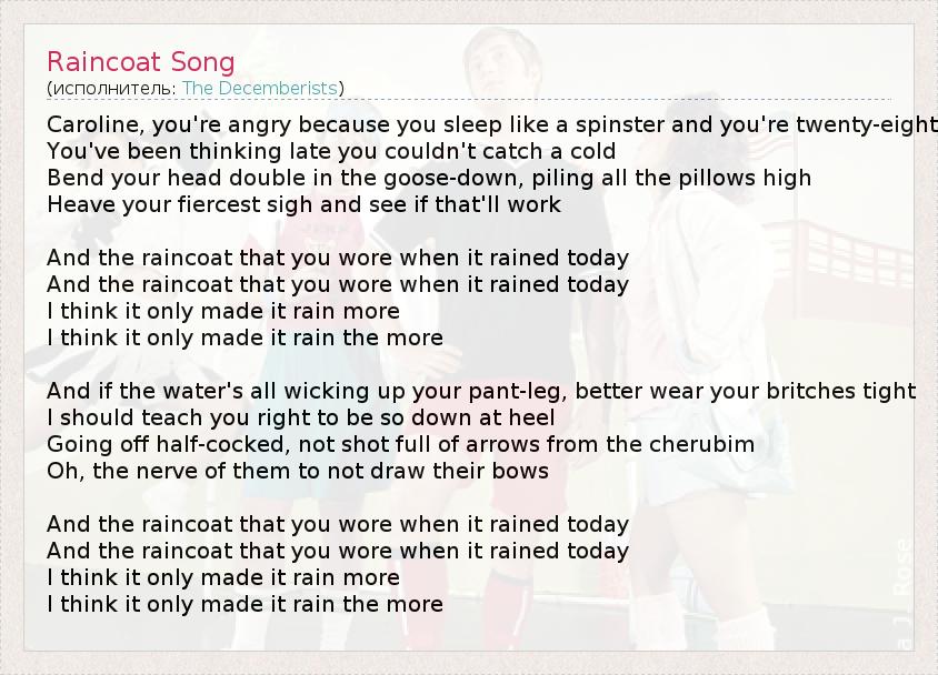 А как ты думаешь, о чем песня "Raincoat Song" ?