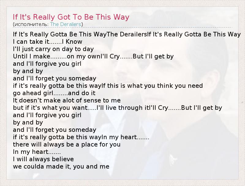А как ты думаешь, о чем песня "If It's Really Got To Be This Way" ?