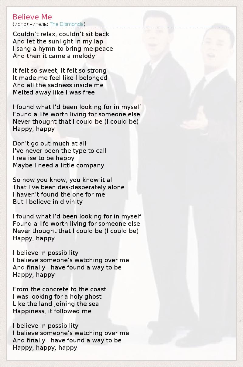 А как ты думаешь, о чем песня "Believe Me" ?
