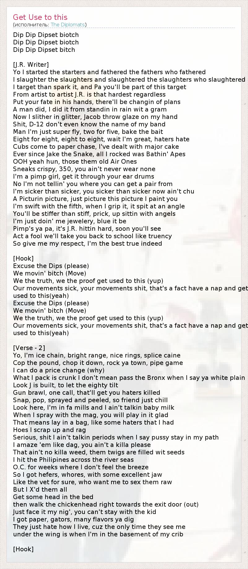 А как ты думаешь, о чем песня "Get Use to this" ?