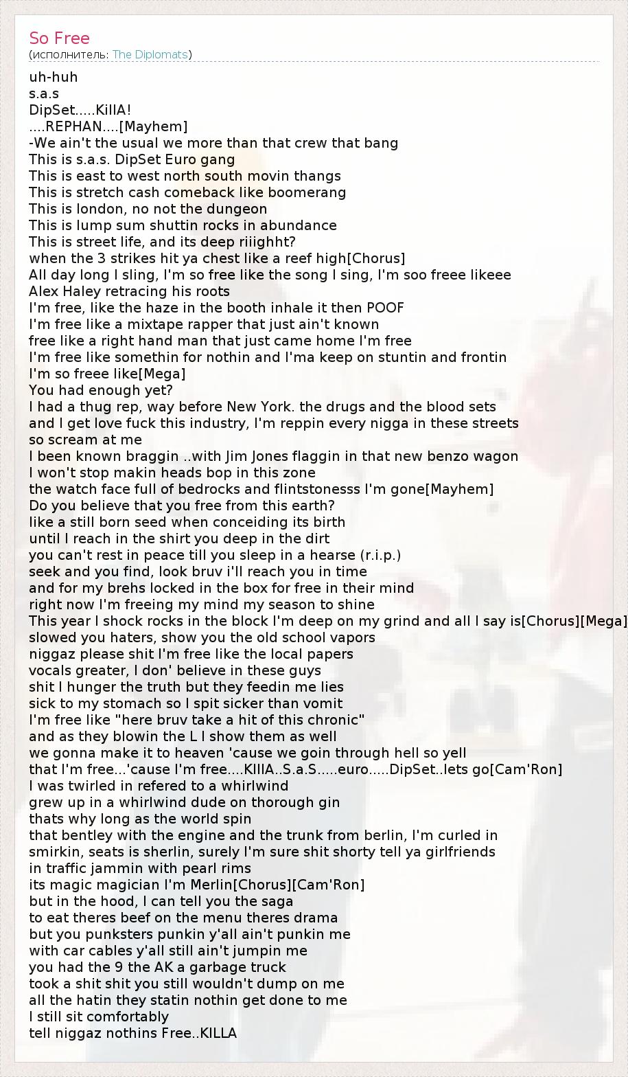that I'm free...'cause I'm free....KIllA..S.a.S.....euro.....DipSet..lets go[Cam'Ron]