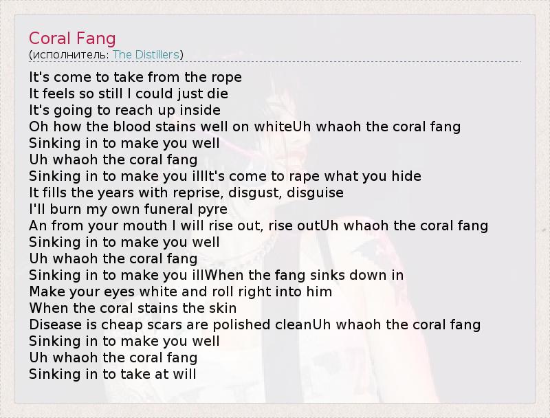 А как ты думаешь, о чем песня "Coral Fang" ?