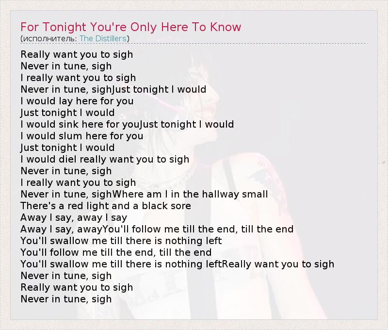 А как ты думаешь, о чем песня "For Tonight You're Only Here To Know" ?