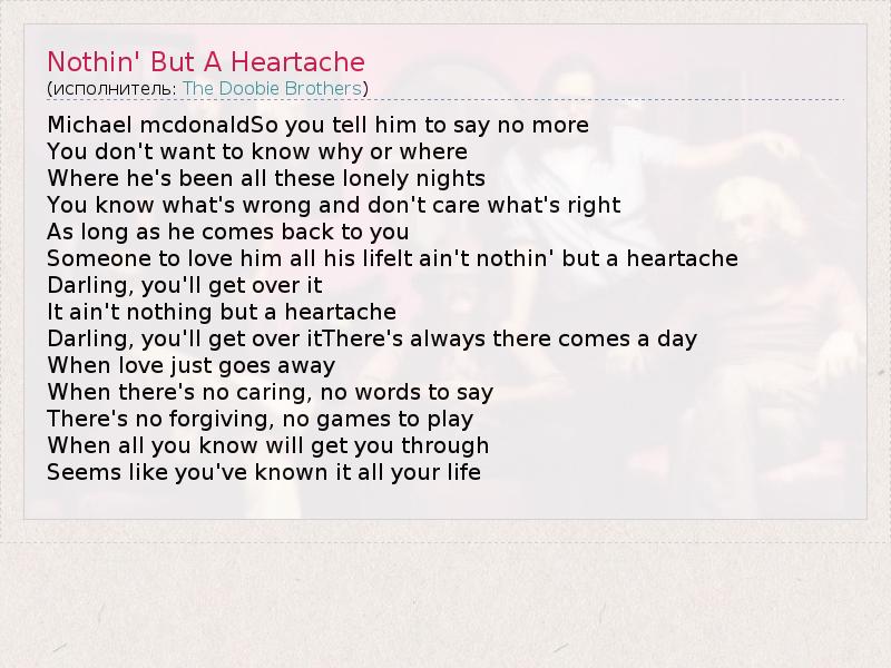 А как ты думаешь, о чем песня "Nothin' But A Heartache" ?