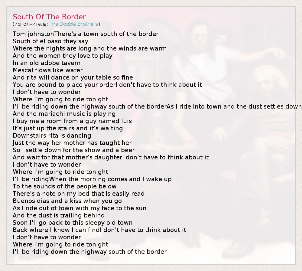 А как ты думаешь, о чем песня "South Of The Border" ?