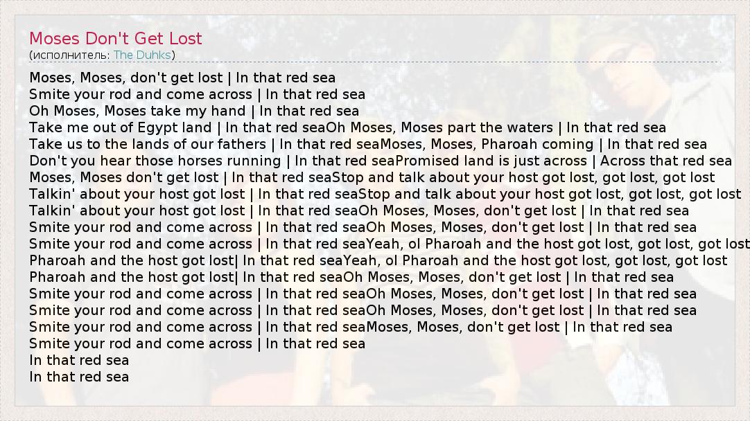 А как ты думаешь, о чем песня "Moses Don't Get Lost" ?