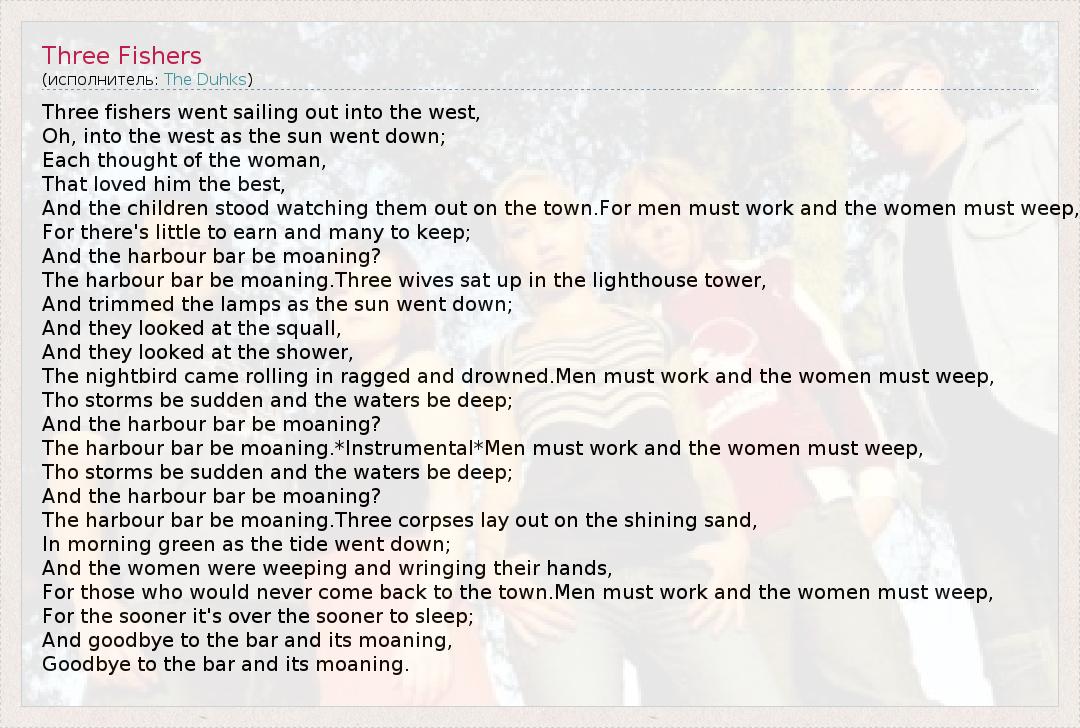 А как ты думаешь, о чем песня "Three Fishers" ?