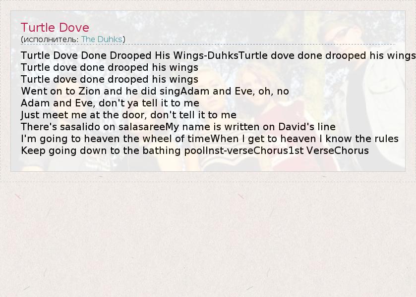 А как ты думаешь, о чем песня "Turtle Dove" ?