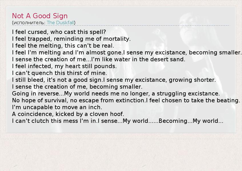 А как ты думаешь, о чем песня "Not A Good Sign" ?