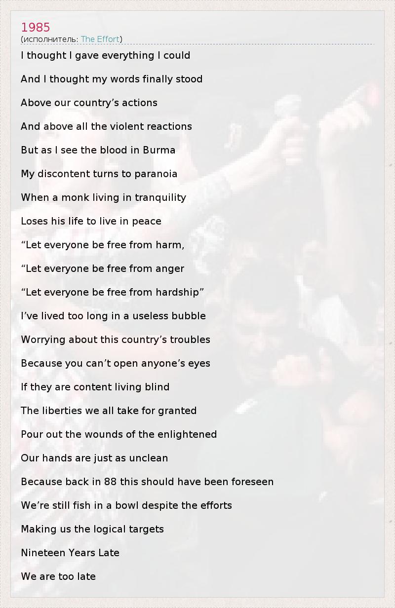 А как ты думаешь, о чем песня "1985" ?