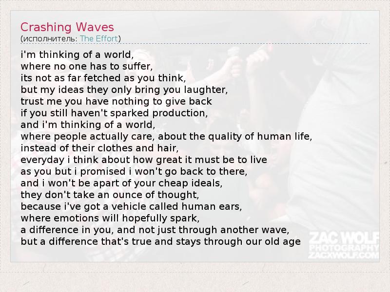 А как ты думаешь, о чем песня "Crashing Waves" ?
