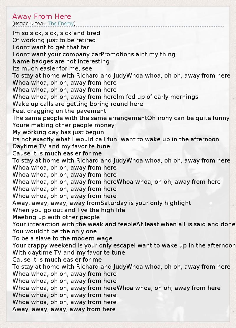 Whoa whoa, oh oh, away from hereIm fed up of early mornings