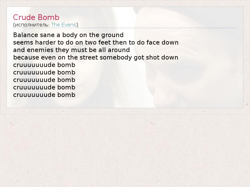 А как ты думаешь, о чем песня "Crude Bomb" ?