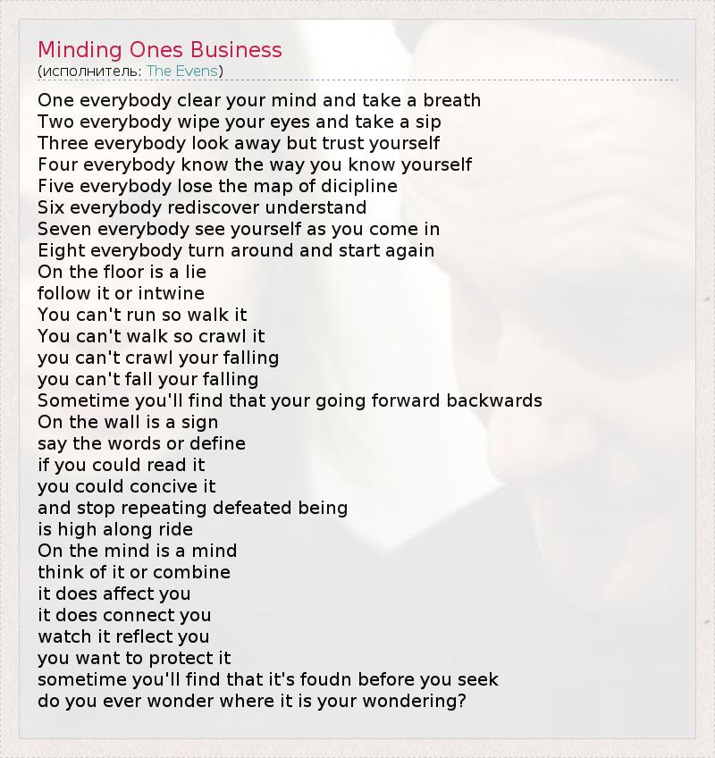 А как ты думаешь, о чем песня "Minding Ones Business" ?