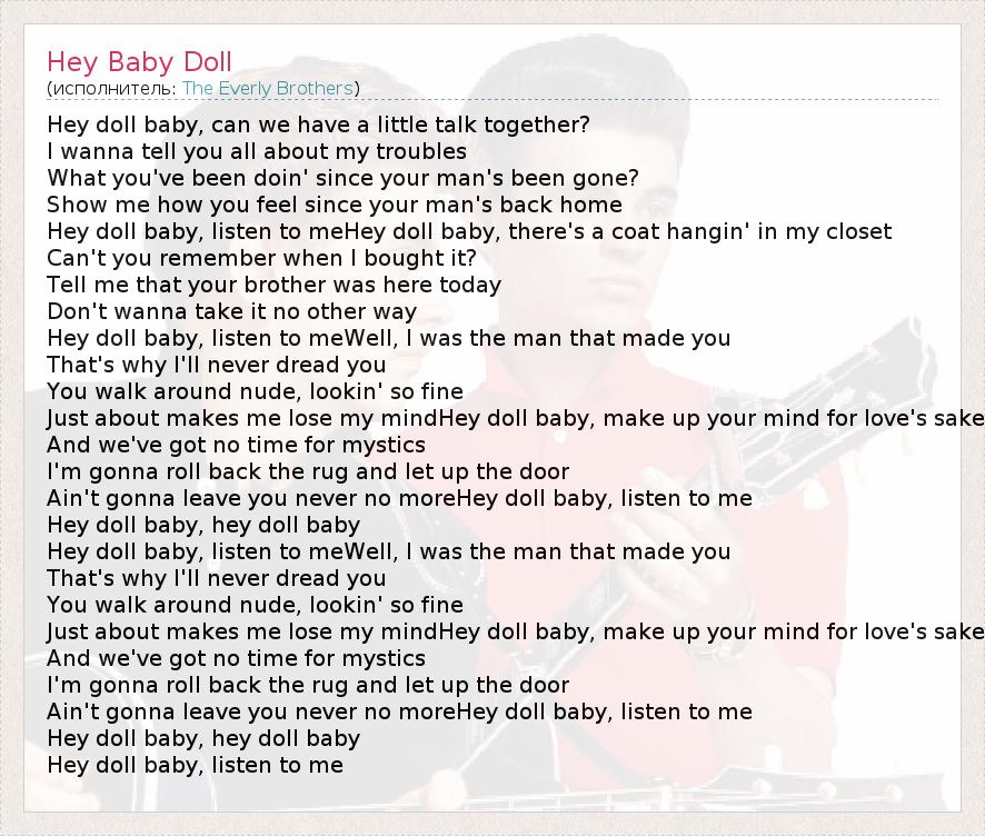 А как ты думаешь, о чем песня "Hey Baby Doll" ?