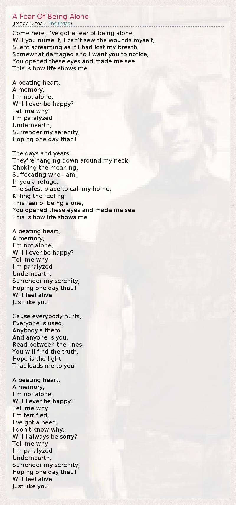А как ты думаешь, о чем песня "A Fear Of Being Alone" ?