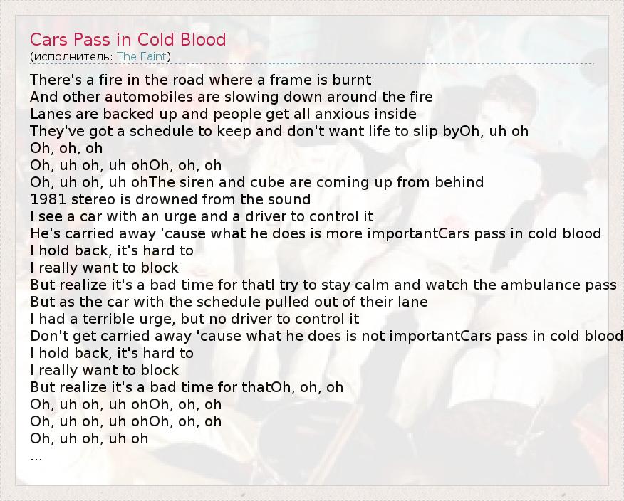 ГлавнаяИсполнителиThe FaintCars Pass in Cold Blood