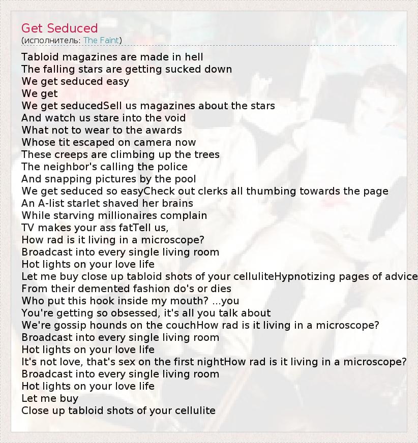 А как ты думаешь, о чем песня "Get Seduced" ?