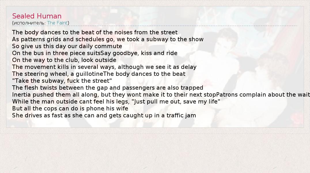 А как ты думаешь, о чем песня "Sealed Human" ?