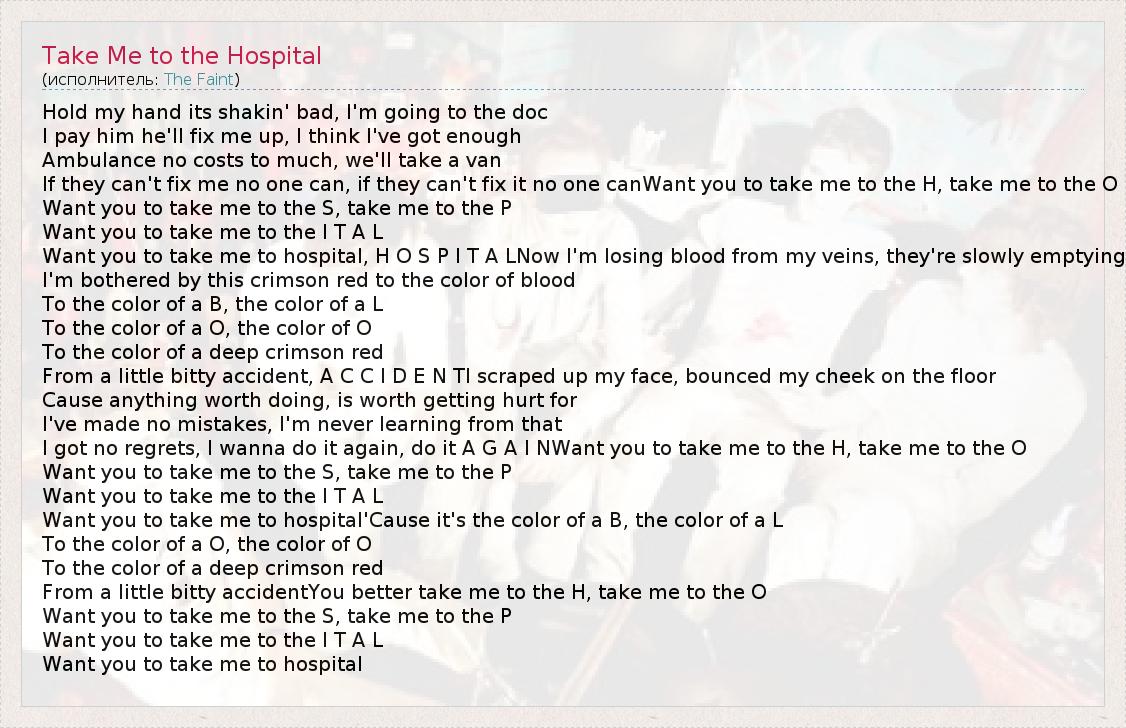 А как ты думаешь, о чем песня "Take Me to the Hospital" ?