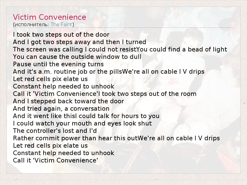 А как ты думаешь, о чем песня "Victim Convenience" ?