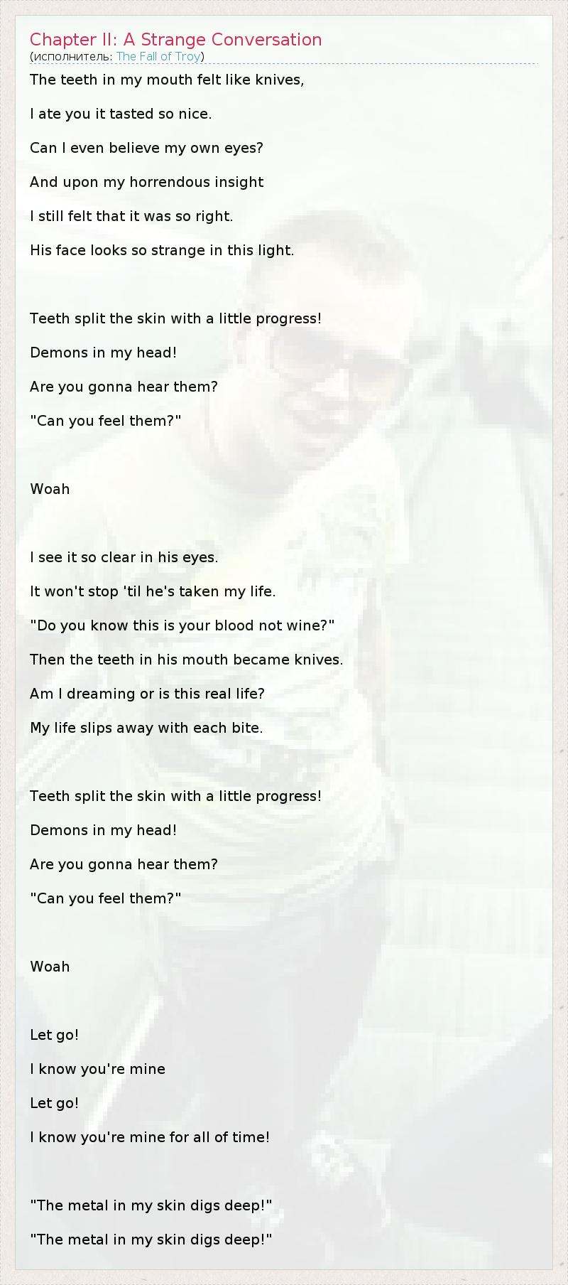 А как ты думаешь, о чем песня "Chapter II: A Strange Conversation" ?