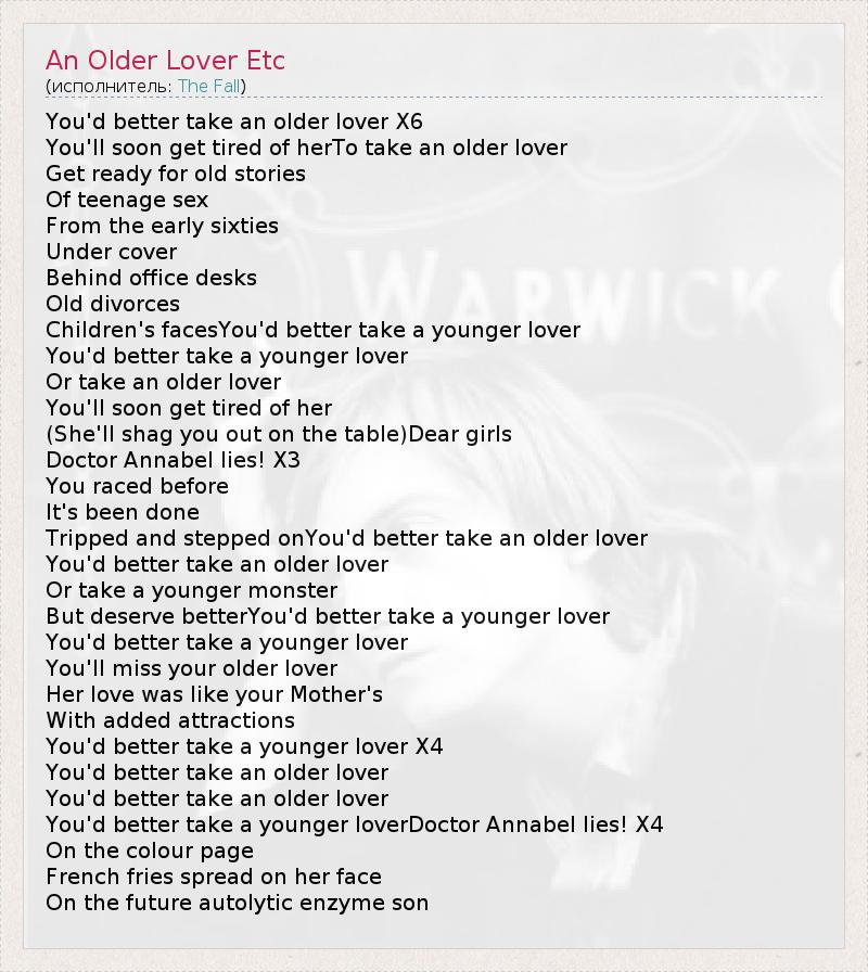 А как ты думаешь, о чем песня "An Older Lover Etc" ?