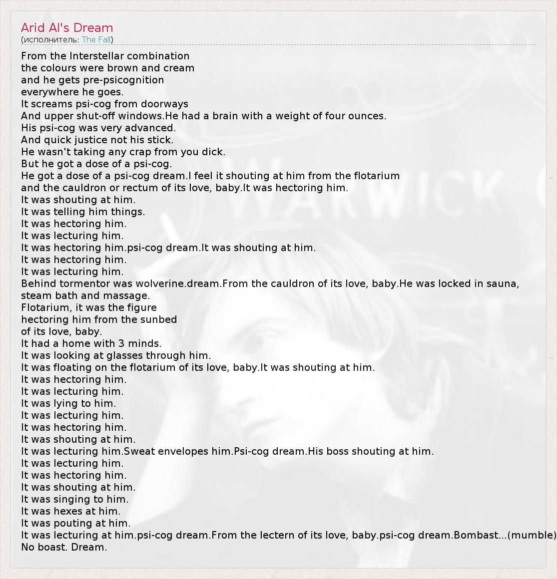 А как ты думаешь, о чем песня "Arid Al's Dream" ?